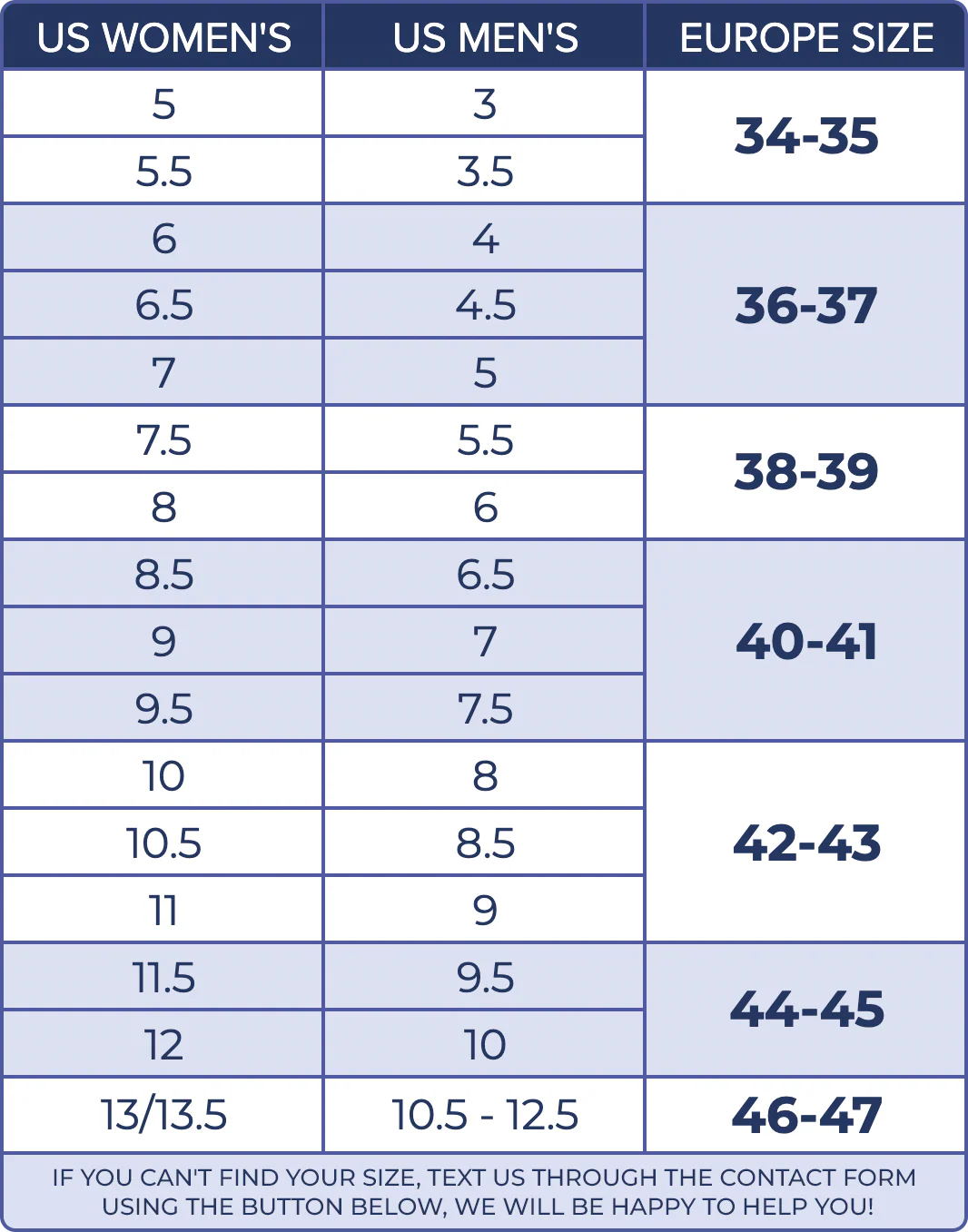 Foot Length | Women (US) | Men (US) | Europe Size |